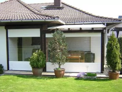 Rollfenster lassen sich leicht per Handkurbel öffnen und schließen oder – für noch mehr Komfort – elektrisch per Knopfdruck über einen nahezu unsichtbaren Motor bedienen. Optional ist die Steuerung per Funk-Handsender sowie eine automatische Regelung über Windwächter und Regensensor möglich, während integrierte Kunststoffleisten einen besonders laufruhigen und verschleißarmen Betrieb gewährleisten. So können Sie Ihren Pavillon oder Ihre überdachte Terrasse flexibel offen oder geschlossen nutzen und verwandeln Ihre Terrasse im Handumdrehen in einen geschützten Wintergarten. Auch als Abschluss von Carports zwischen Haus und Garage eignen sich Rollfenster ideal, da sie kaum Platz benötigen, zuverlässig vor Zugluft und Regen schützen und gleichzeitig den Charakter der Terrasse als Freisitz sowie die freie Aussicht bewahren.